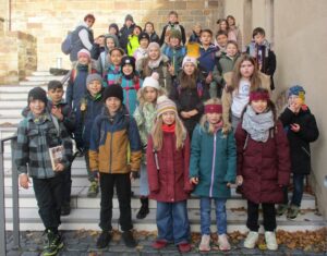 Die Klassen 3a und 3b unternahmen am 12. November einen Ausflug nach Fritzlar. Im Rahmen des Themas Kirche im Religionsunterricht, in dessen Verlauf auch schon die Kleinengliser Kirche erkundet worden war, besichtigten die Kinder nun den Fritzlarer Dom. Bei der Führung mit Frau Küsters und Frau Spellerberg entdeckten die Schülerinnen und Schüler in dem beeindruckenden Kirchenraum die Gegenstände, die sie im Unterricht bereits kennengelernt hatten. Danach ging es hinab in die Krypta, die zu den ältesten Teilen des Doms gehört. Auch das Dommuseum besuchten die beiden Klassen. Ein besonderes Highlight war das berühmte Heinrichskreuz, das die Kinder aus nächster Nähe betrachten konnten.